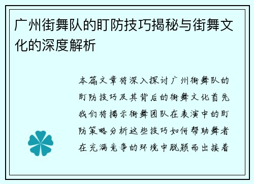 广州攀岩队区域防守战术解析与攀岩热点探讨